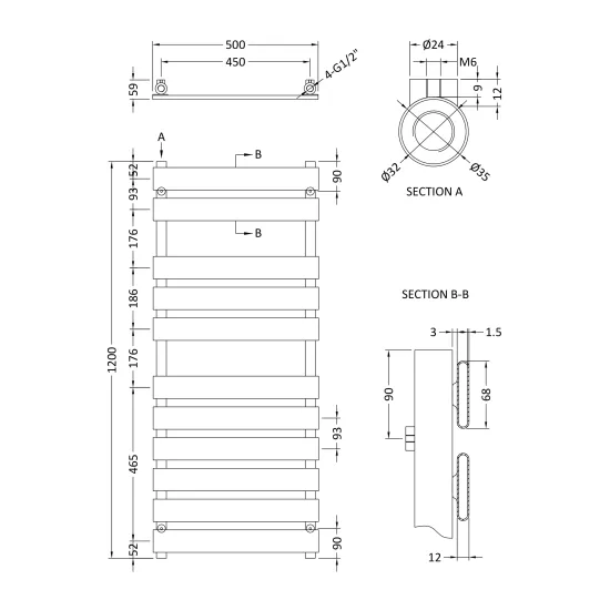 We recoend pipework is not installed until receipt of radiator or heated towel rail