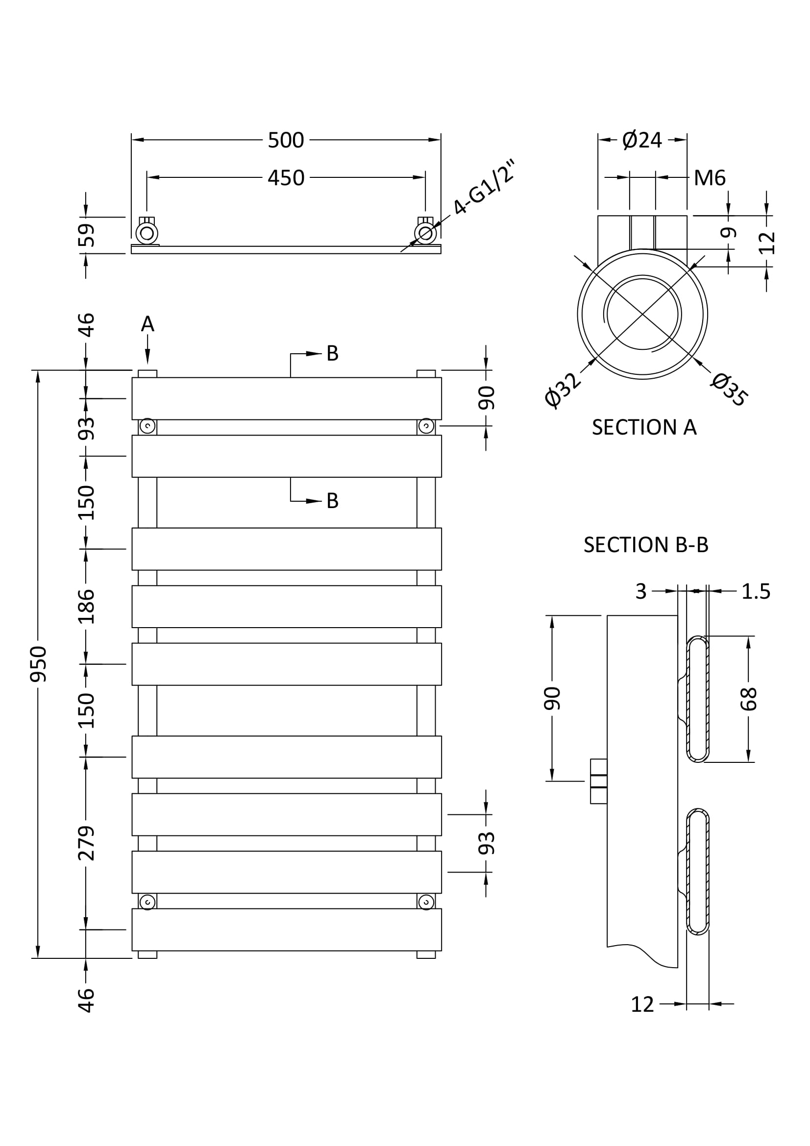 Heated Towel Rail 950 x 500mm