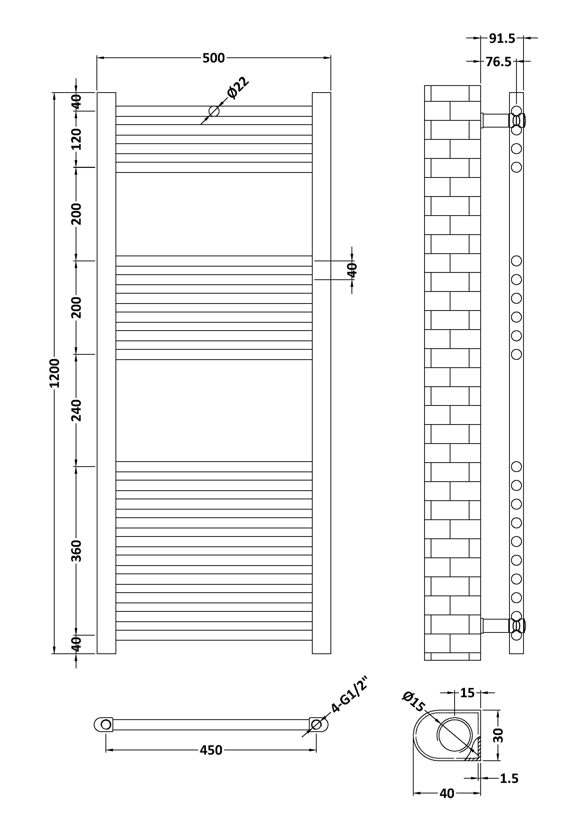 nuie choice Ladder Rail - 1200 x 500mm - 20 rails - Anthracite