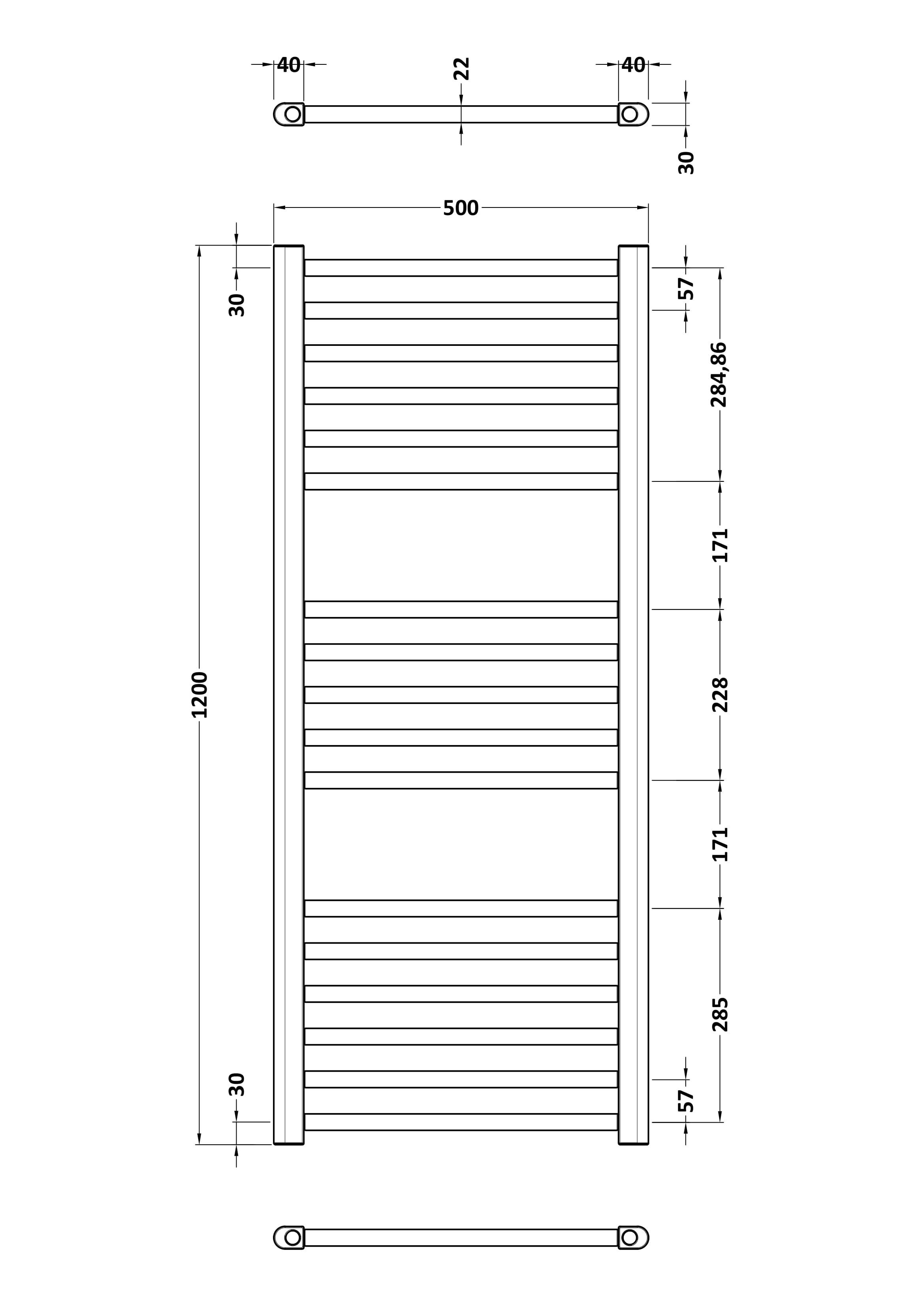 Lorica Straight Towel Radiator with Round Rails 800mm x 500mm