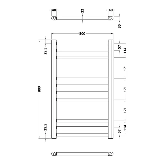 Lorica Straight Towel Radiator with Round Rails 800mm x 500mm