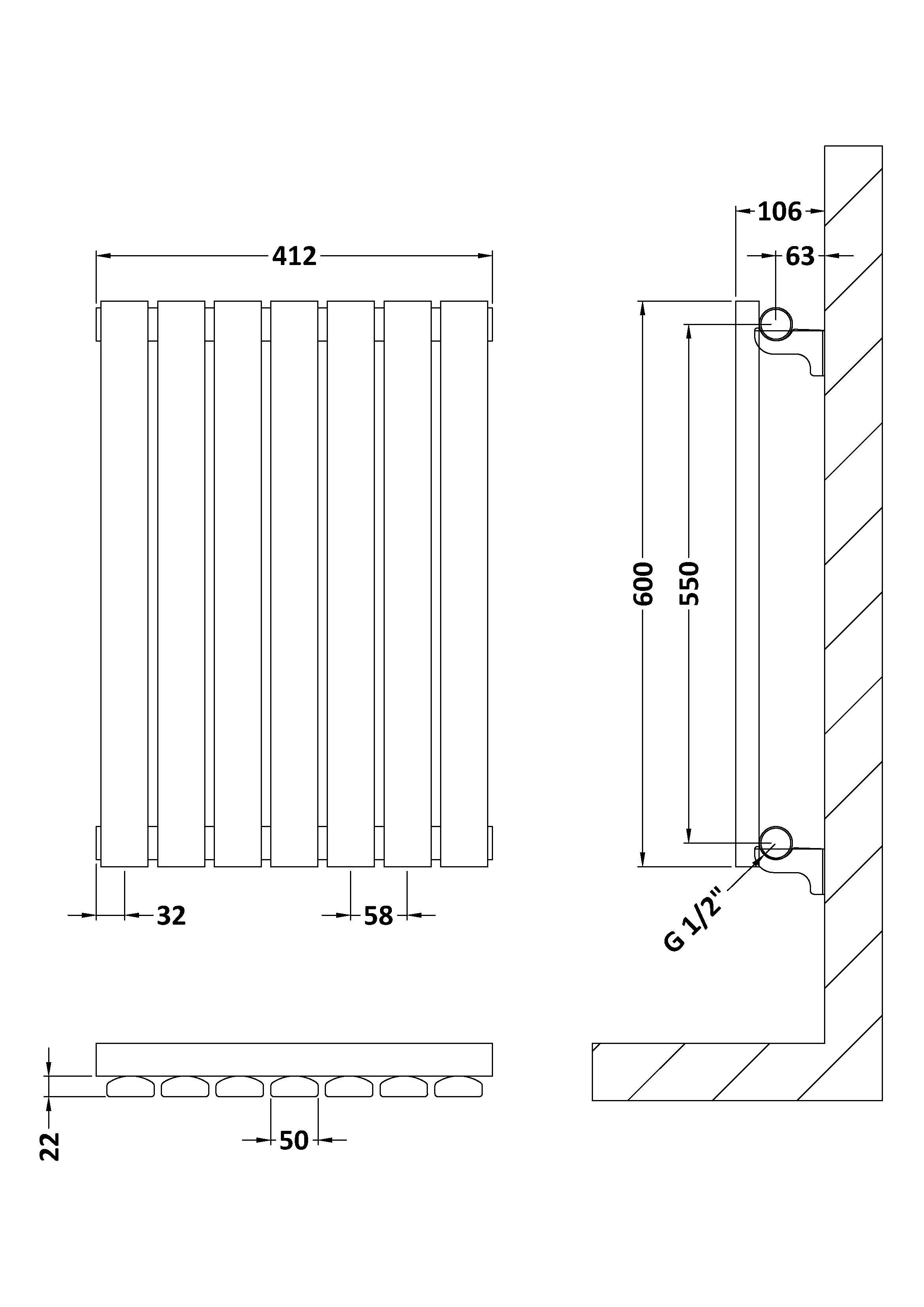 • All tappings are 1/2 British Standard Pipe and we recommend that pipework not be installed until you receive the radiator or heated towel.