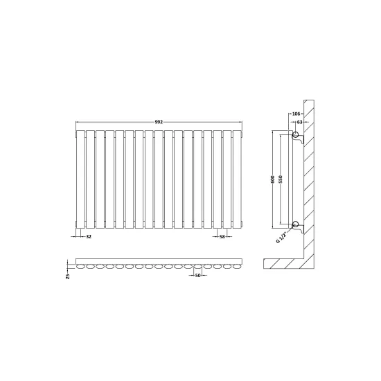 Hudson Reed Revive 992mm x 600mm Anthracite Horizontal Single Panel Radiator