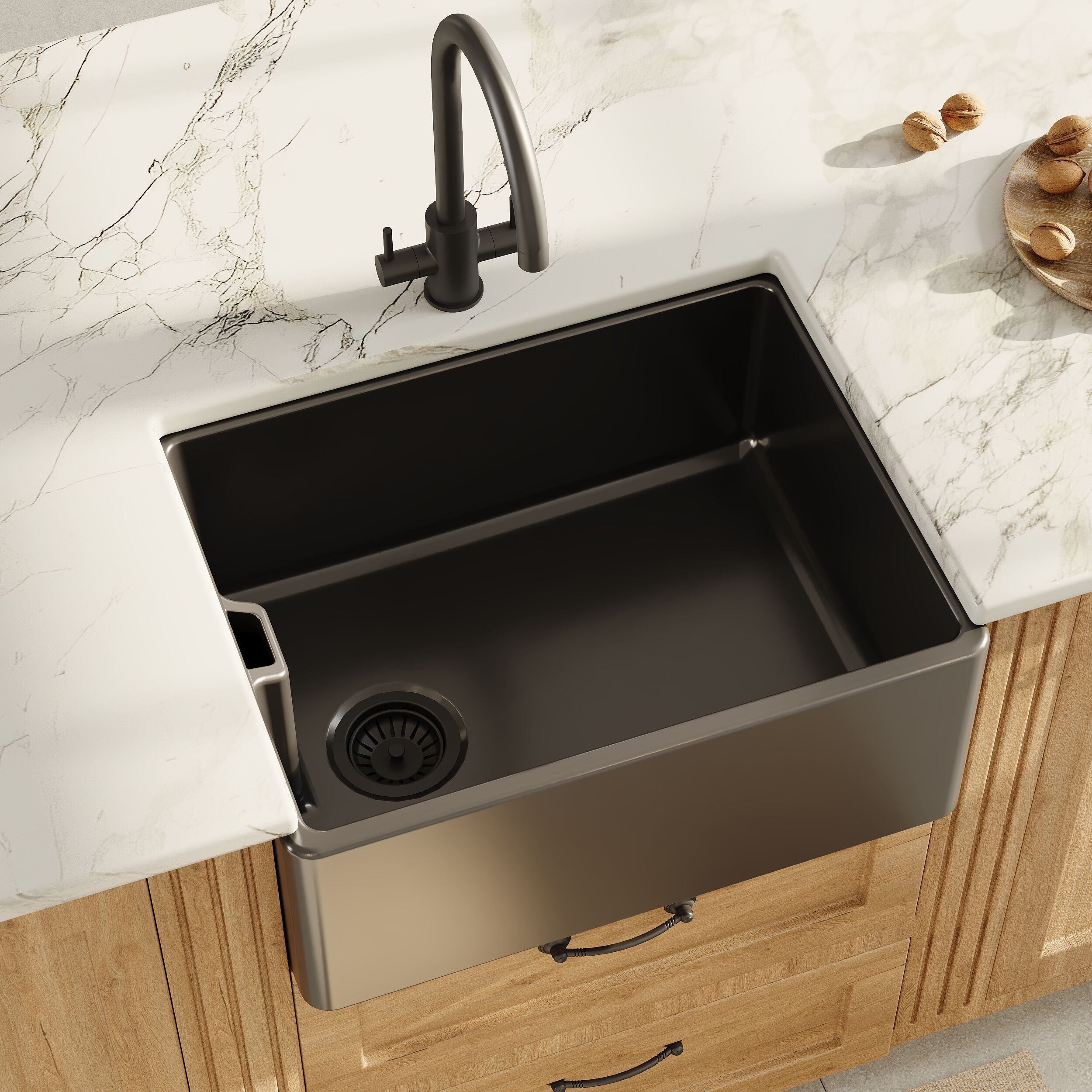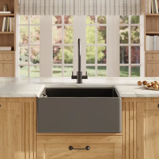 Nuie Single Bowl Fireclay Soft Black Belfast Sink