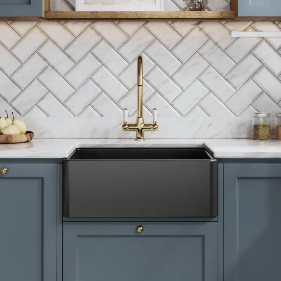 Nuie Single Bowl Fireclay Soft Black Belfast Sink