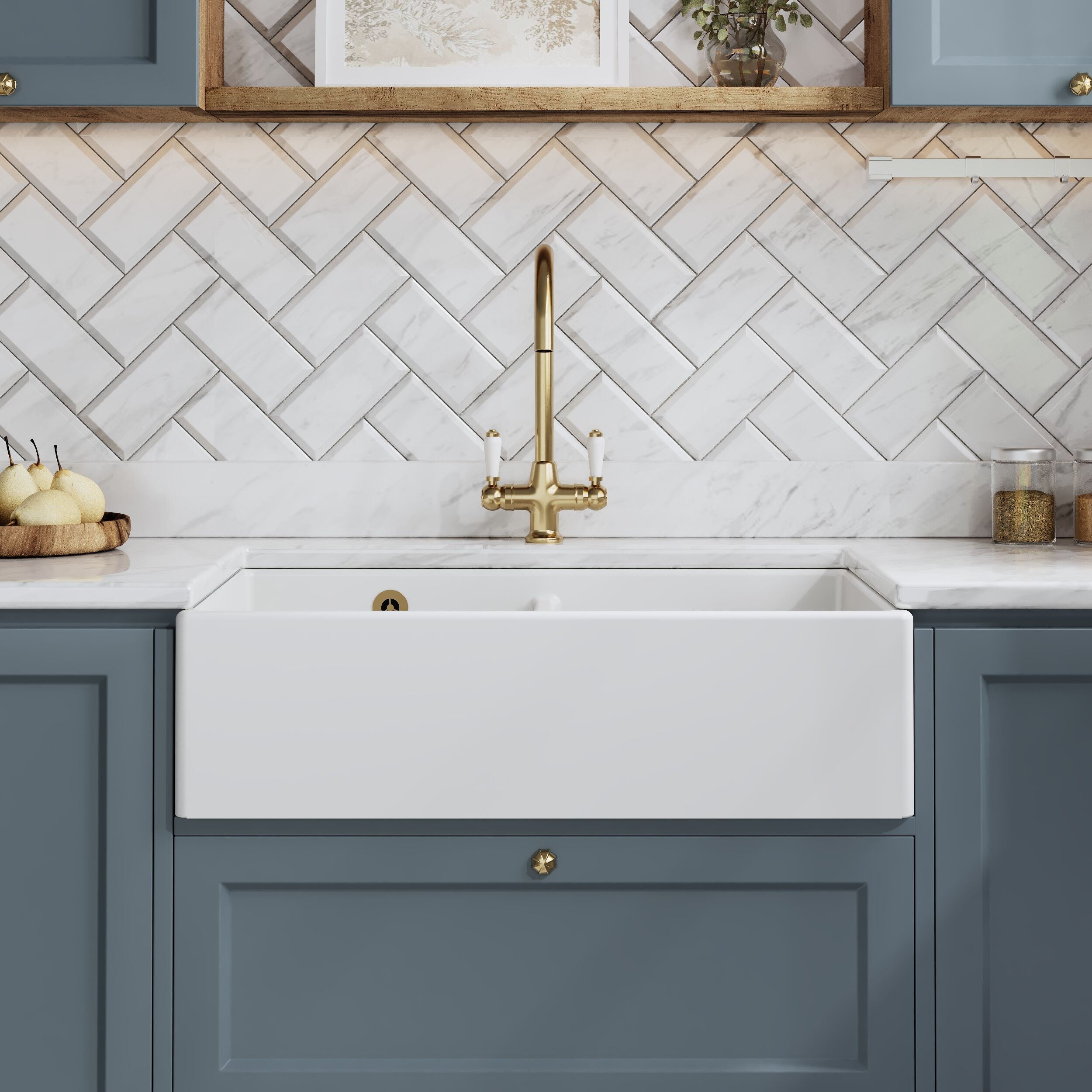 nuie Butler Sink Stepped Weir & Overflow 795mm x 500mm x 220mm - White