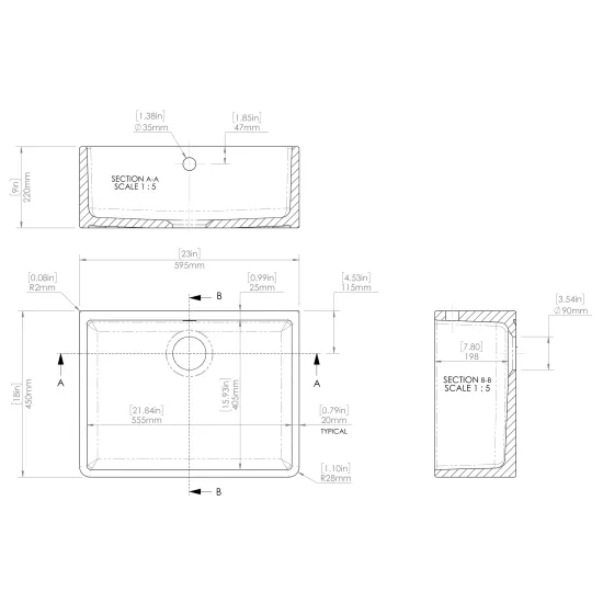 Butler Sink Square Back 595 x 450 x 220