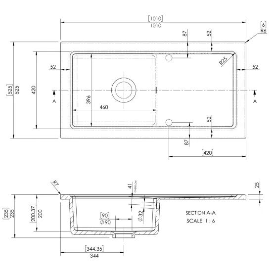 Counter Top Sink 1.5 Bowl 1010mm x 525mm