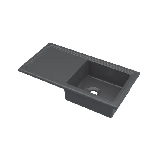 Nuie 1.5 Bowl 1010 x 525mm Fireclay Soft Black Rectangular Countertop Sink