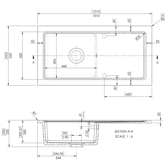nuie Counter Top Sink Single Bowl 1010mm x 525mm - Black