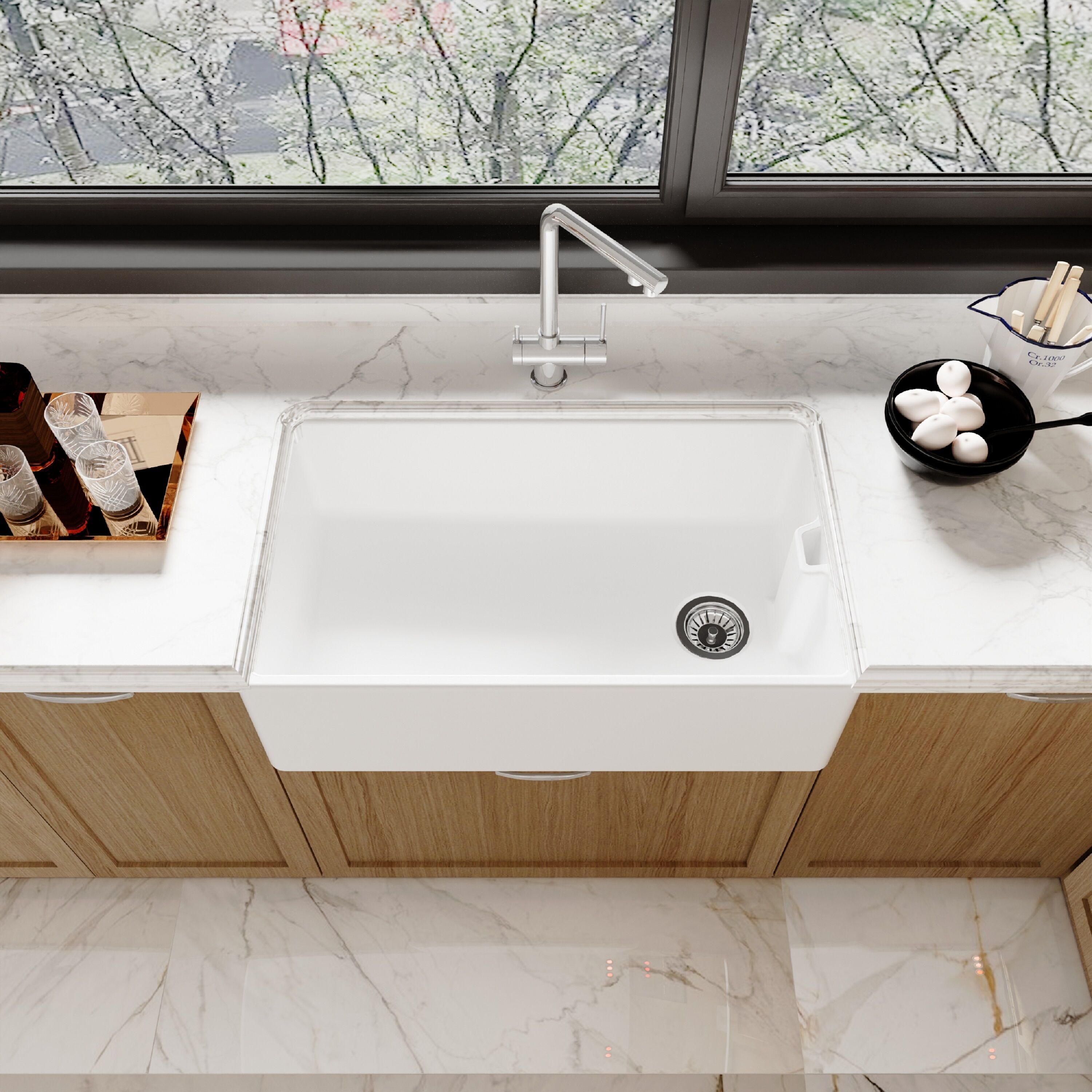 Nuie Single Bowl 795 x 460 x 245mm Fireclay White Belfast Sink