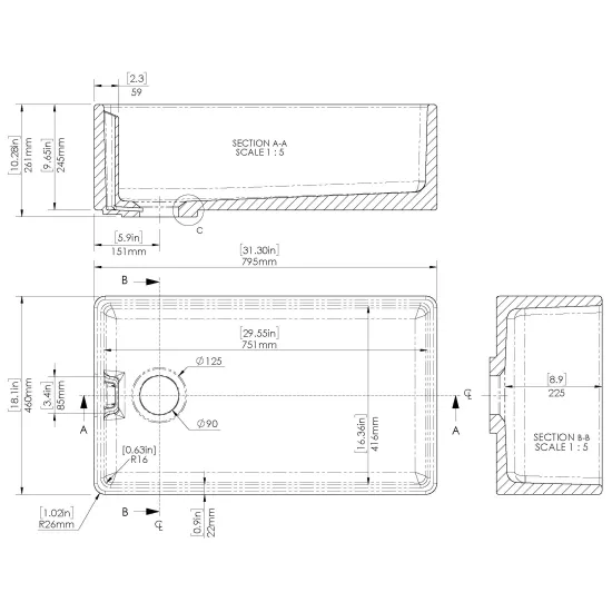 nuie Belfast Sink 795 x 460 x 245mm - White