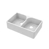 Nuie Double Bowl 795 x 500 x 220mm Fireclay White Butler Sink With Stepped Weir