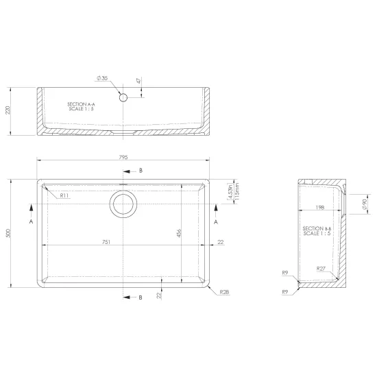 nuie Butler Sink comes with Overflow 795 x 500 x 220mm - White
