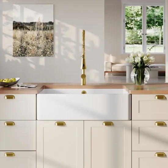 Nuie Single Bowl 895 x 460 x 245mm Fireclay White Belfast Sink