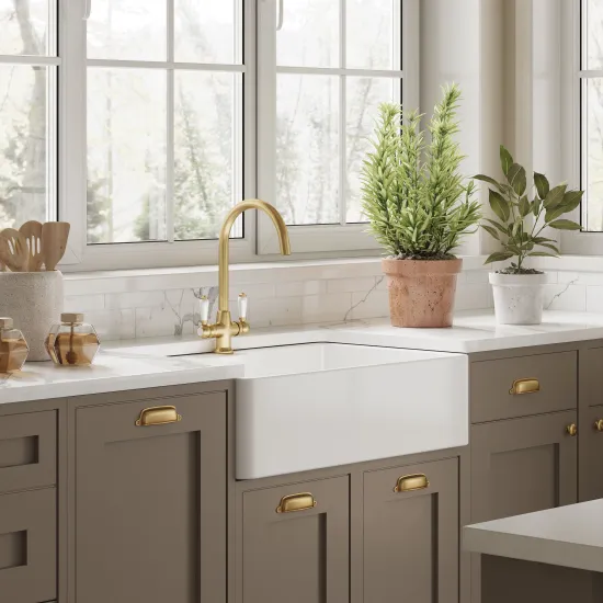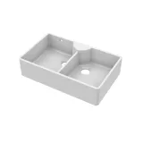 Nuie Double Bowl 895 x 550 x 220mm Fireclay White Butler Sink With Stepped Weir and Overflow