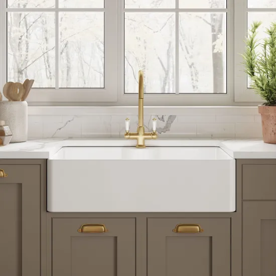 Nuie Double Bowl 795 x 500 x 220mm Fireclay White Butler Sink With Flush Weir and Overflow