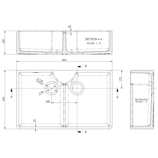 nuie Butler Sink Stepped Weir 895 x 550 x 220mm - White
