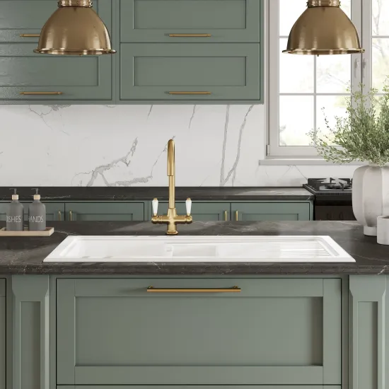 Nuie 1.5 Bowl 1010 x 525mm Fireclay White Rectangular Countertop Sink