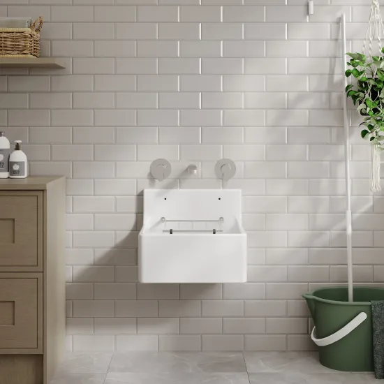 nuie Fireclay Sinks Fireclay Cleaner Sink with Grid 455mm x 362mm x 396mm - White