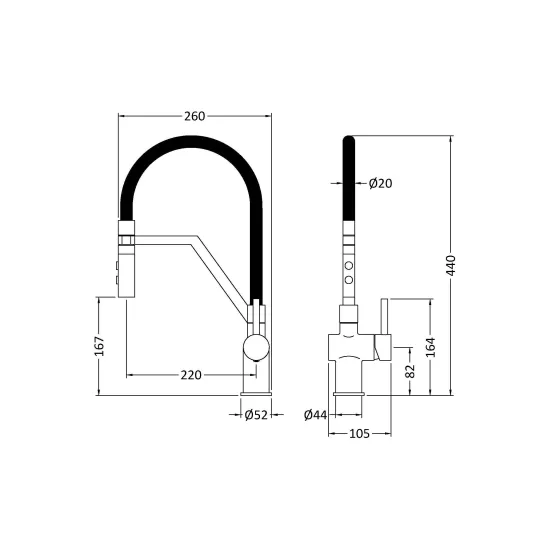 nuie Kitchen Taps Ravi Mono Basin Single Lever Round Basin Tap & Rinser - Chrome