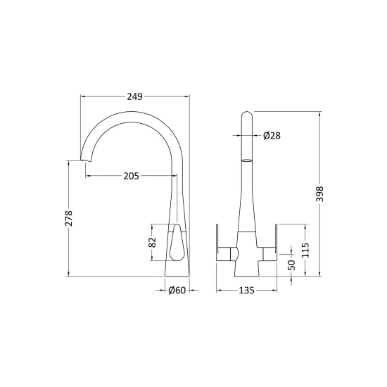Kitchen Taps Samir Mono Basin Single Lever Round Basin Tap & Rinser