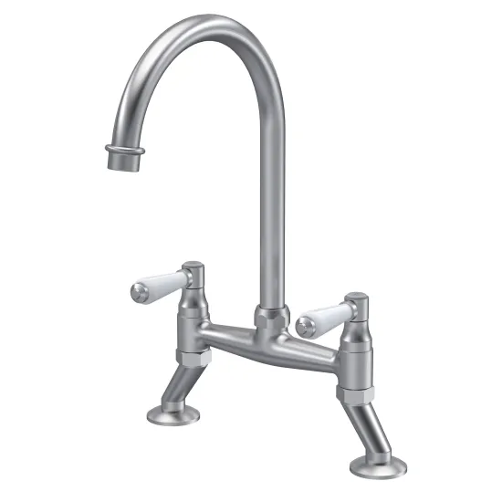 nuie Kitchen Taps Traditional 2 Tap Hole Bridge Mixer Tap with Lever Handles - Brushed Nickel