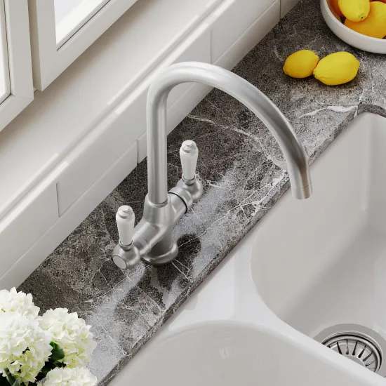 Kitchen Taps Traditional 1 Tap Hole Mono Sink Mixer Tap with Lever Handles