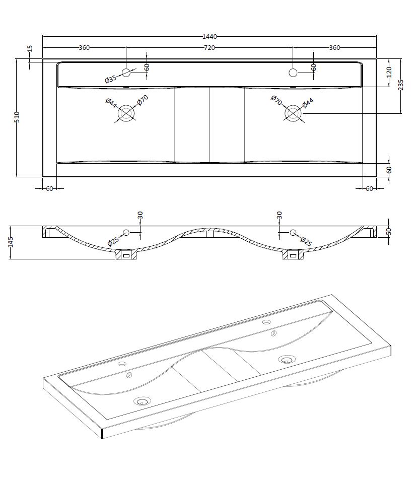 Quartet 2 Tap Hole Polymarble Double Basin 1400mm