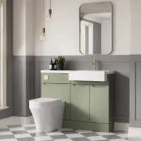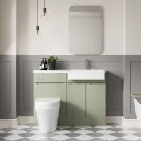 Nuie Lux Loave 1100mm Reed Green Right Hand Handleless Combination Unit & Basin Soft Close Doors Rigid