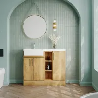 Nuie Lux Krest 1000mm Left Hand Autumn Oak Combination Unit & Basin With Soft Close Doors & Handles