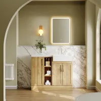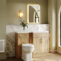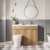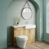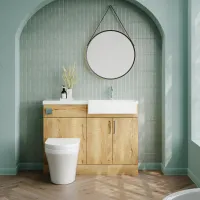 Nuie Lux Krest 1100mm Autumn Oak Right Hand Floor Standing Combination Unit & Basin With Soft Close Doors
