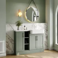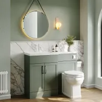 Nuie Lux Fable 1100mm Fern Green Combination Unit With L-Shaped Basin Left Hand & Soft Close Doors