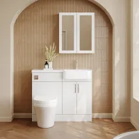 Nuie Lux Krest 1000mm Right Hand Matt White Combination Unit & Basin With Soft Close Doors, Rigid