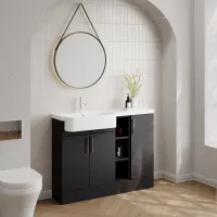 Hudson Reed Fusion 1100mm Pebble Grey Left Hand Semi Recessed Combination Unit with Soft Close Doors & Handles