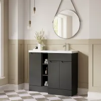 Nuie Havana 800mm Graphite Grey Woodgrain Wall Hung Vanity Unit with Thin-Edge Ceramic Basin