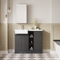 Nuie Lux Krest 1105mm Pebble Grey Right Hand Combination Unit & Basin With Handles