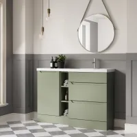 Nuie Lux Fable 1505mm Left Hand Fern Green Combination Unit & L-Shaped Basin