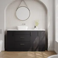 Bayswater Hartleigh 600mm Matt Black Wall Hung 1 Drawer Vanity Unit With 1 Tap Hole Basin