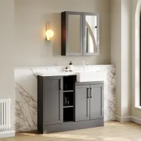 Nuie Lux Loave 1200mm Pebble Grey Right Hand Handleless Combination Unit With L-Shaped Basin