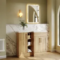 Nuie Lux Fable 1000mm Autumn Oak Traditional Combination Unit with L-Shaped Basin Right Hand