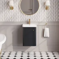 Nuie 400mm Soft Black Wall Hung 1 Door Vanity Basin Unit Including Ceramic Basin