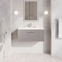 Nuie Art Deco 800mm Satin Grey Wall Hung Single Drawer Vanity Unit with Basin