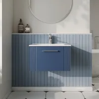Nuie Deco 600mm Satin Blue Wall Hung Single Drawer Vanity Unit & Basin With Chrome Handles
