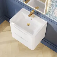 Nuie Havana 600mm Wall Hung 2 Drawer Vanity Unit With Thin-Edge Ceramic Basin