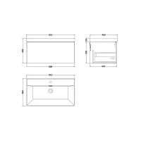 Nuie Lunar 800mm Wall Hung 2 Drawer Unit with 1 Tap Hole Basin