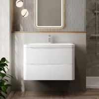 Nuie Lunar 800mm Satin White Wall Hung Vanity Unit With Ceramic Basin