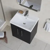 Nuie Arno 500mm Soft Black Wall Hung 2 Door Vanity Unit with Basin