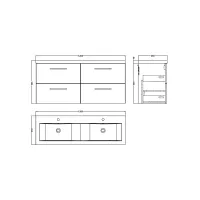 Nuie Arno 1200mm Anthracite Wall Hung 4-Drawer Vanity Unit with Double Basin