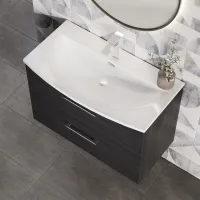 Nuie Arno 800mm Charcoal Black Wall Hung 2-Drawer Vanity Unit Including Basin